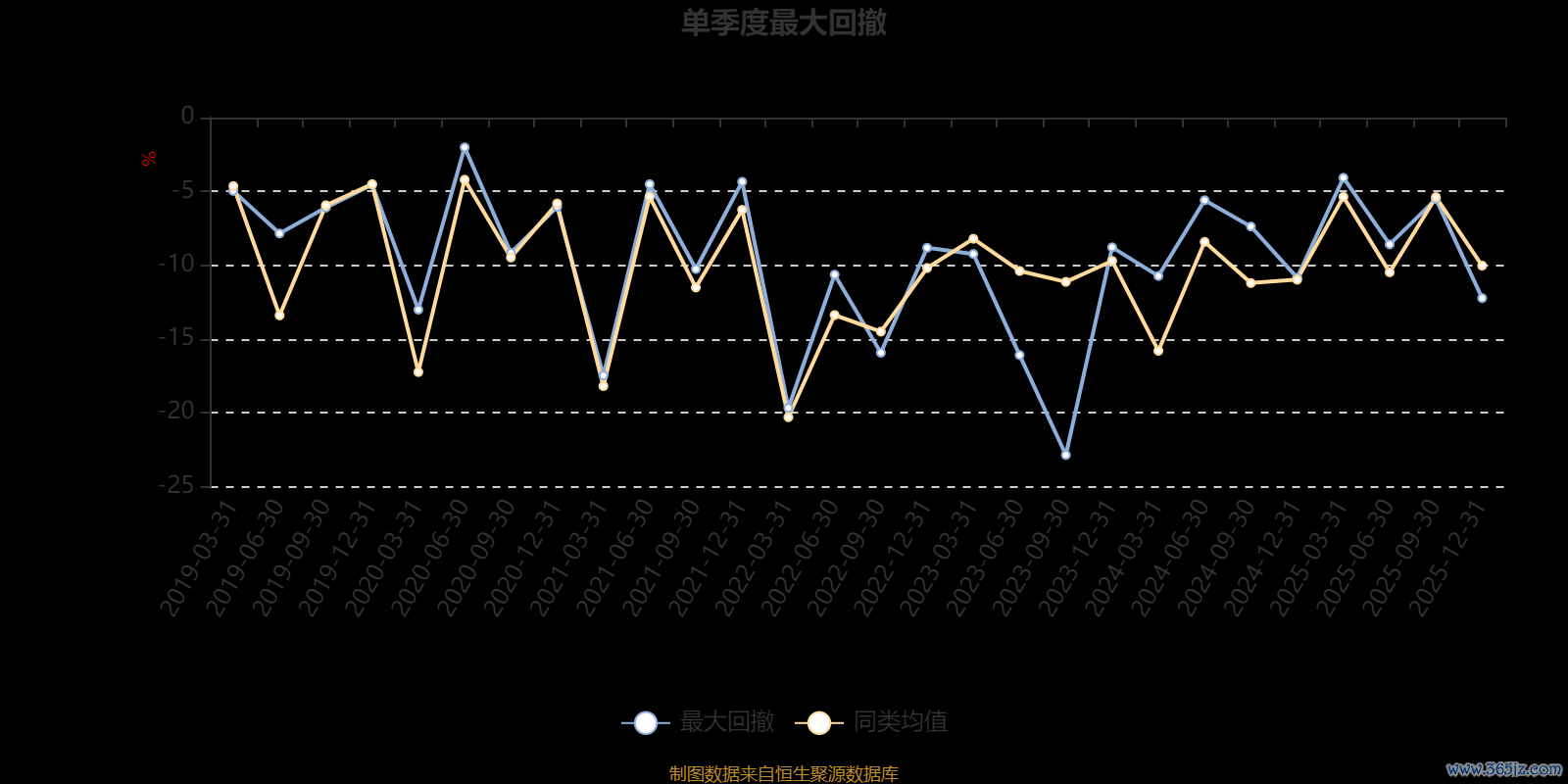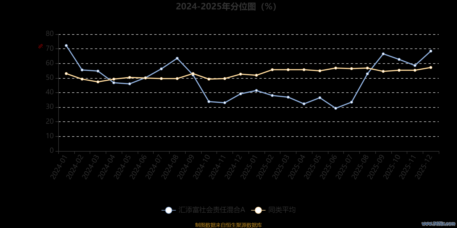 通过所选区间该基金净值增长率分位图,可以观察该基金与同类基金业绩比较情况。图为坐标原点到区间内某时点的净值增长率在同类基金中的分位数。
