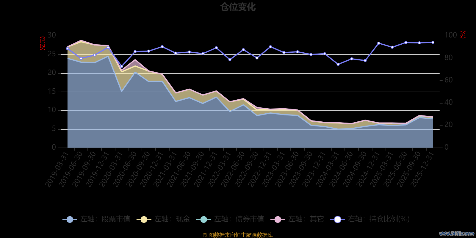 据定期报告数据统计,近三年平均股票仓位为86.17%,同类平均为86.12%。2025年末基金达到94.06%的最高仓位,2020年一季度末最低,为72.63%。