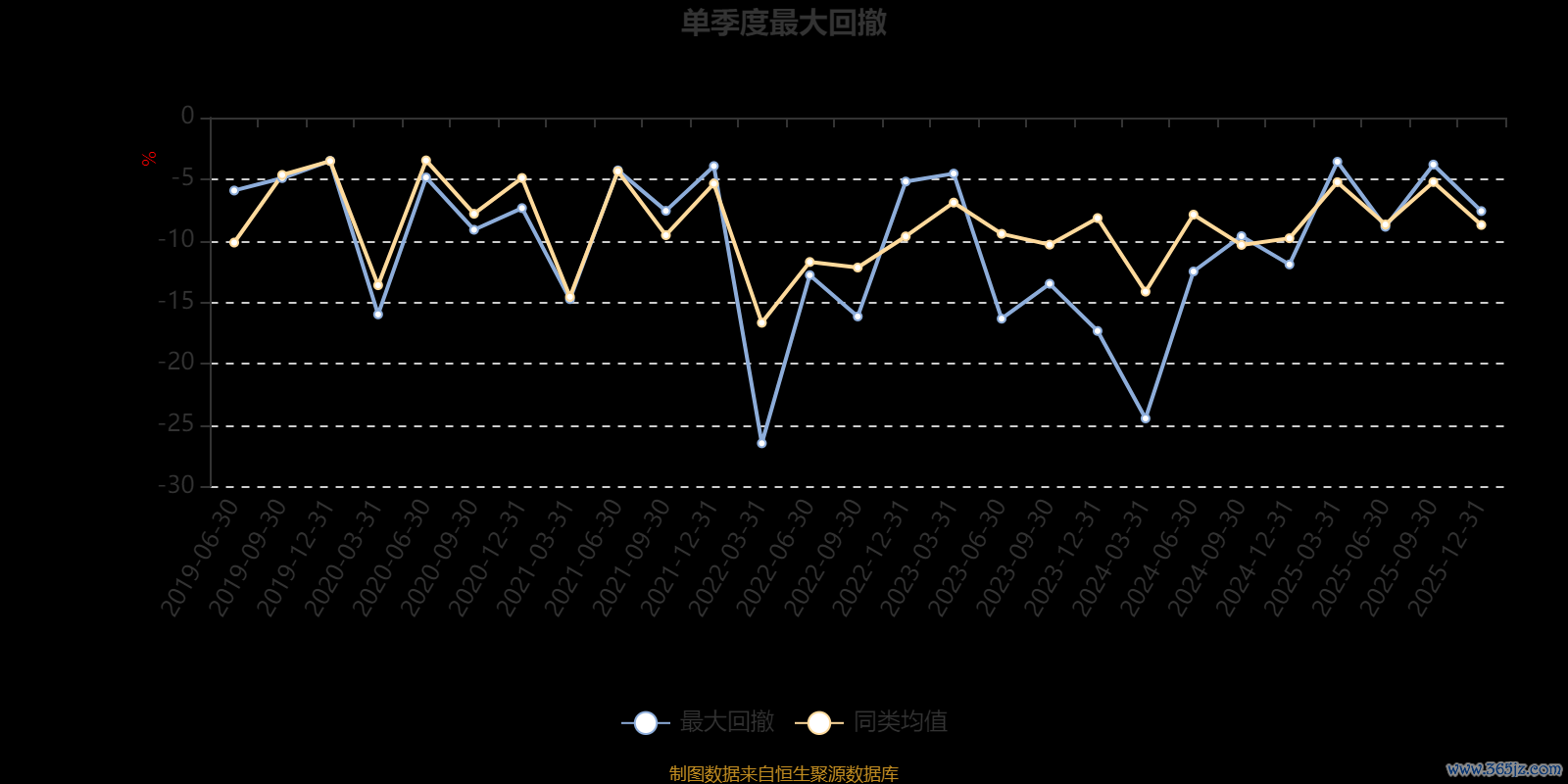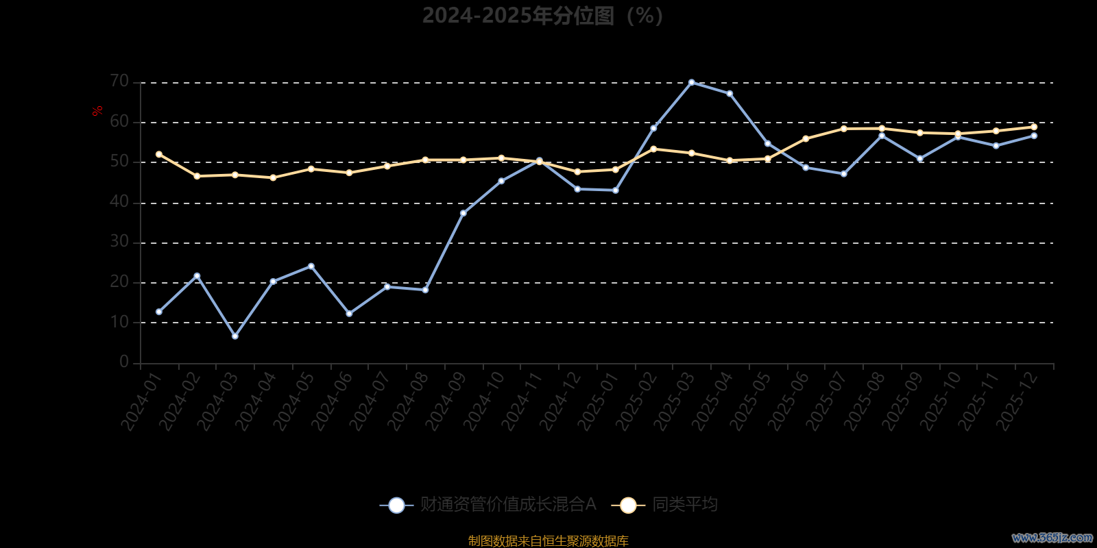 通过所选区间该基金净值增长率分位图,可以观察该基金与同类基金业绩比较情况。图为坐标原点到区间内某时点的净值增长率在同类基金中的分位数。