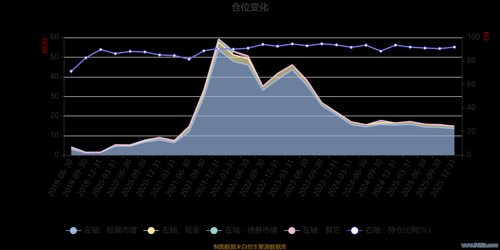 据定期报告数据统计,近三年平均股票仓位为92.35%,同类平均为72.57%。2023年三季度末基金达到94.64%的最高仓位,2019年上半年末最低,为71.31%。