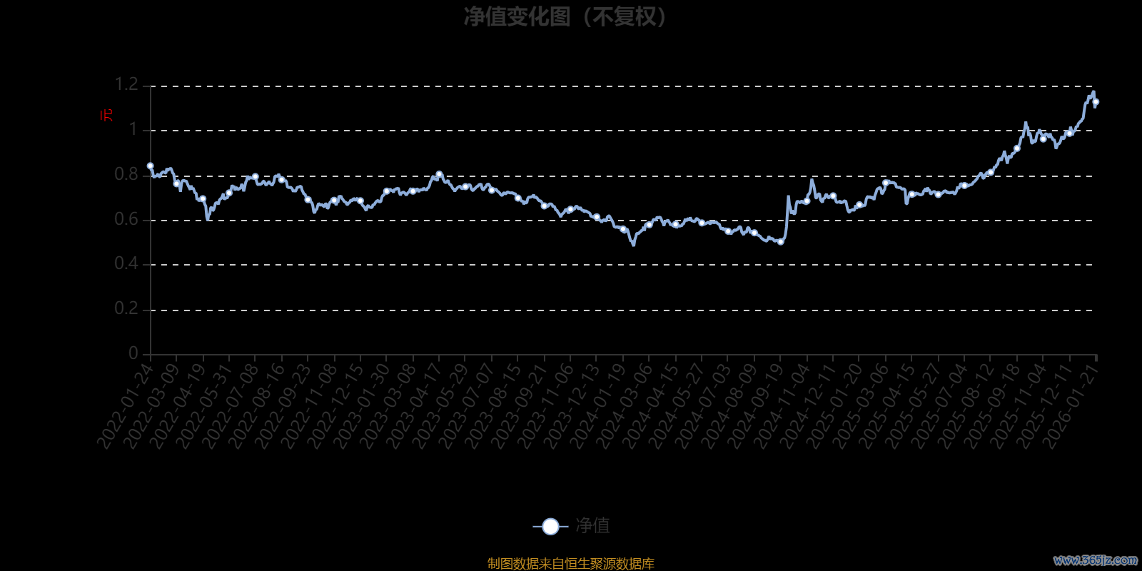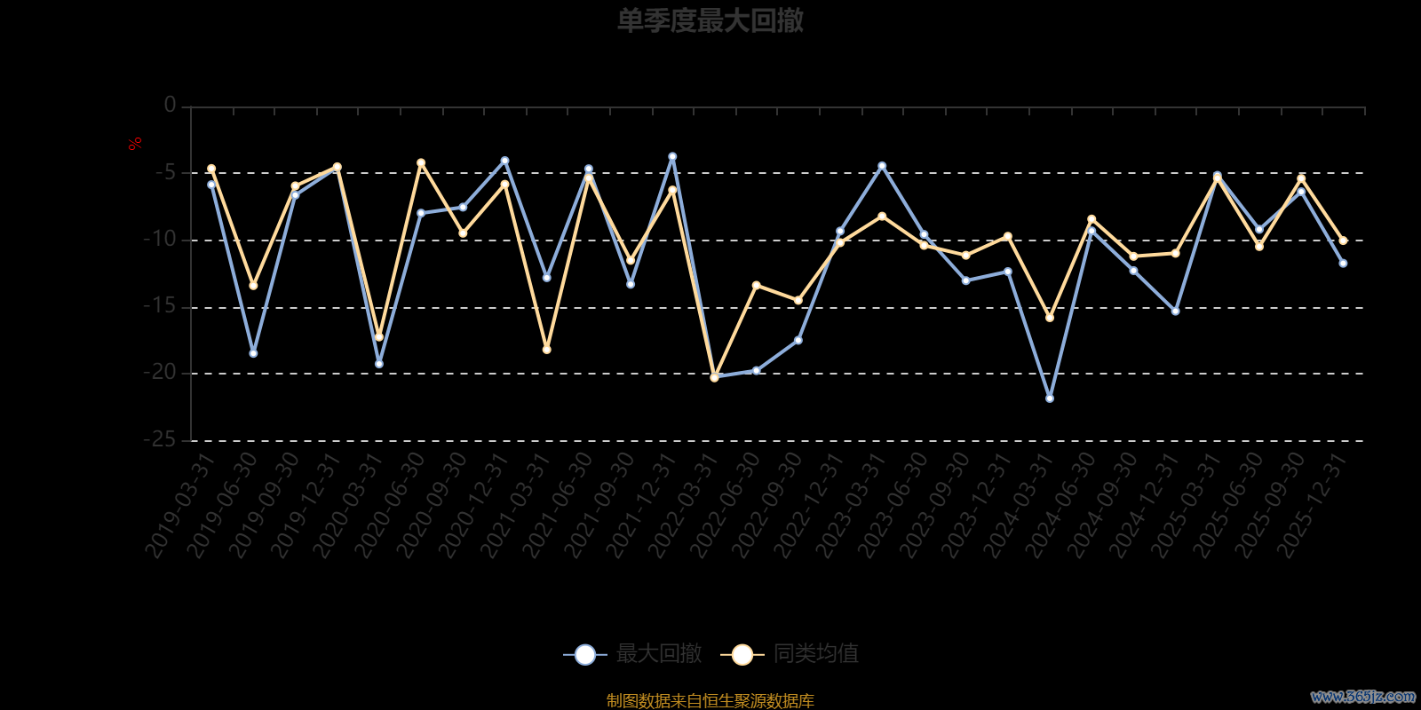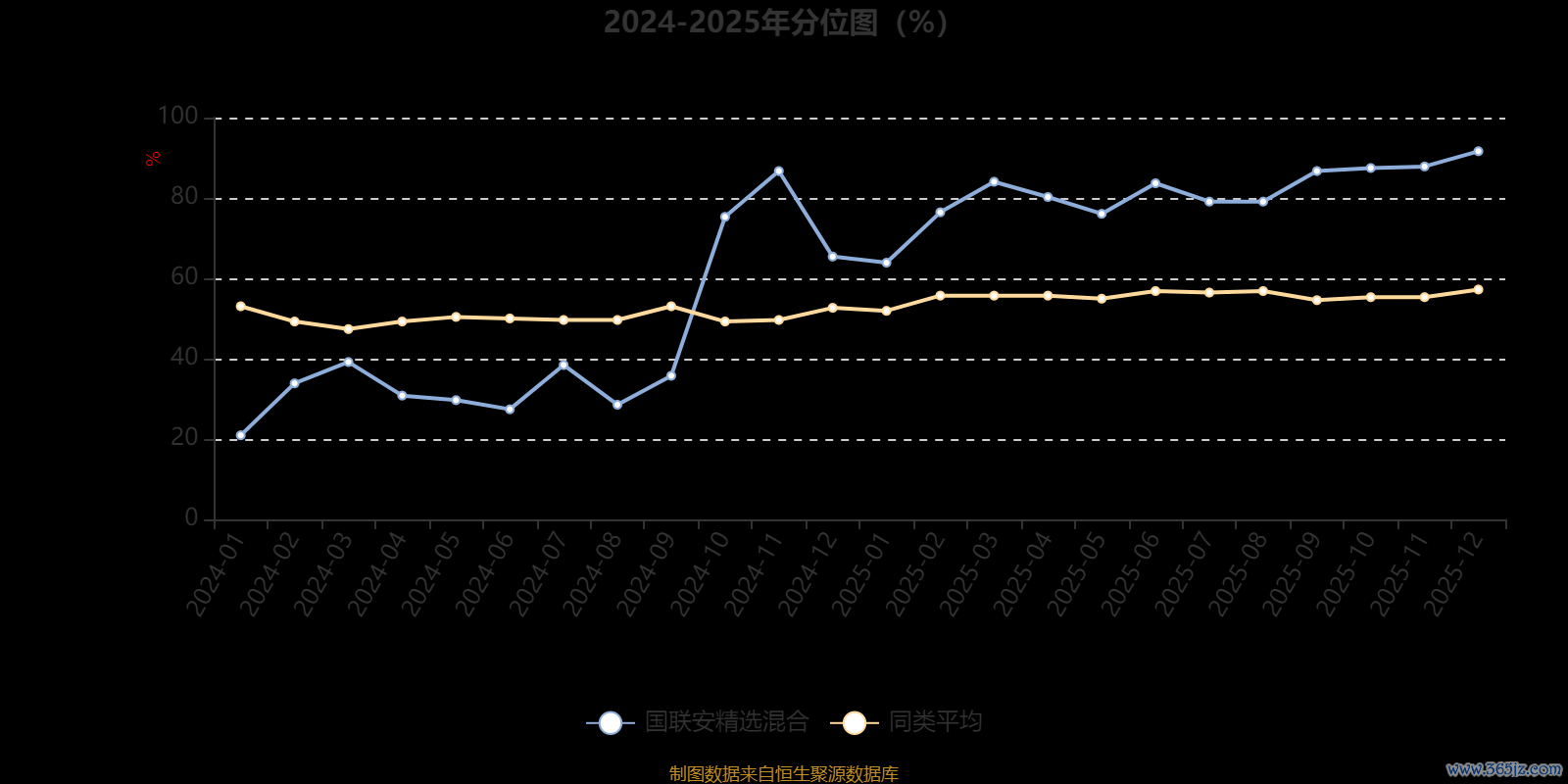 通过所选区间该基金净值增长率分位图,可以观察该基金与同类基金业绩比较情况。图为坐标原点到区间内某时点的净值增长率在同类基金中的分位数。