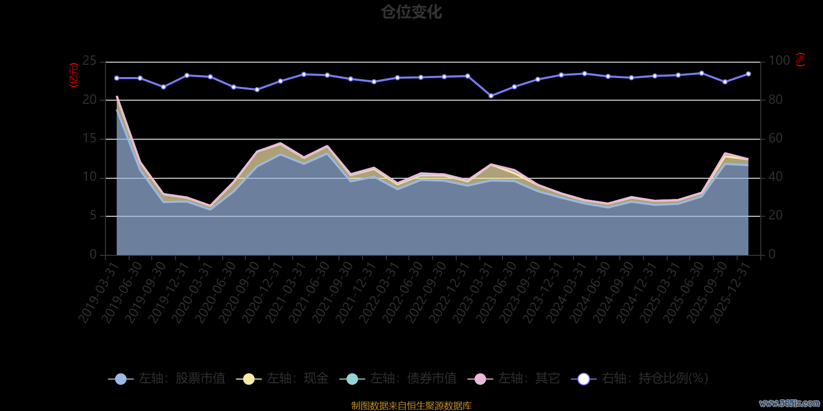 据定期报告数据统计,近三年平均股票仓位为91.18%,同类平均为86.12%。2025年上半年末基金达到94.04%的最高仓位,2023年一季度末最低,为82.33%。